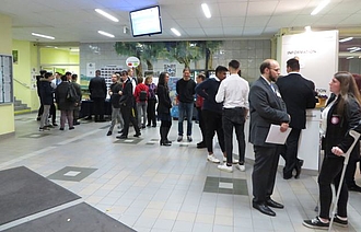 Viele Besucher strömten zur htl donaustadt. Nach einem allgemeinen Empfang in der Aula hörten sie sich meist einen Vortag an, bei dem das Ausbildungsangebot vorgestellt wurde.